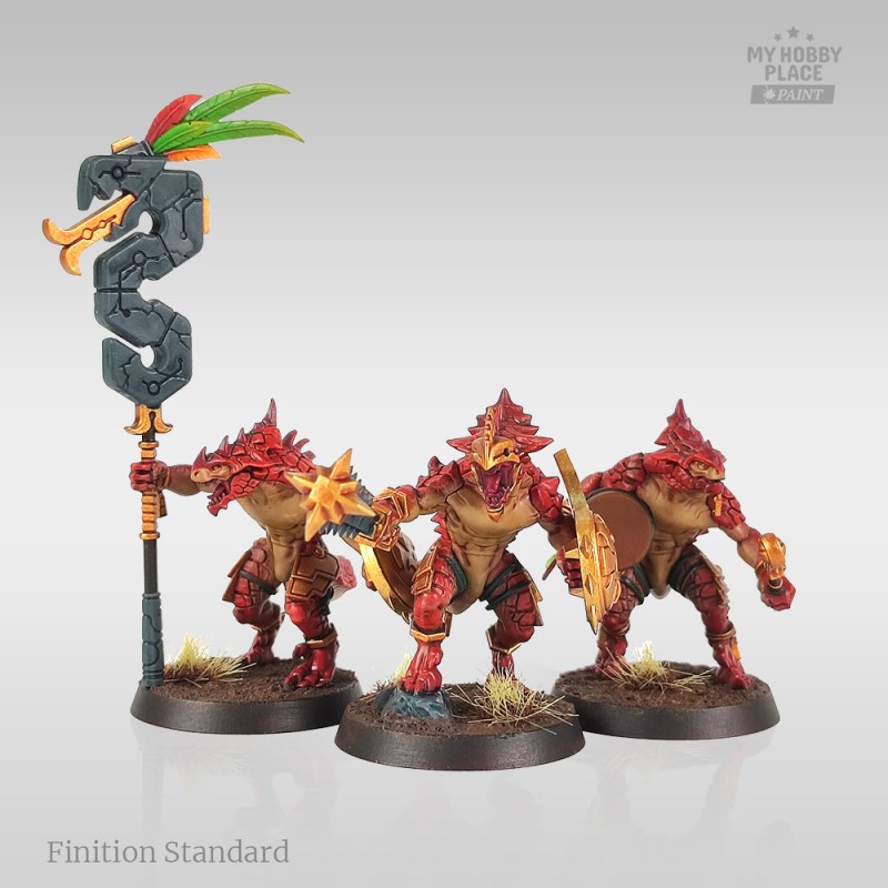 J'en profite !Les Guerriers Saurus sont la pièce maîtresse de la plupart des armées Seraphon. Avec leurs mâchoires puissantes, leurs griffes déchirantes et leurs écailles résistantes comme une armure, ce sont des armes vivantes et des défenseurs du nexus géomantique. Placez une lance ou une massue en célestite entre leurs mains, et ces bêtes furieuses deviennent une cohorte disciplinée capable de tenir tête aux adversaires les plus redoutables des Royaumes Mortels.