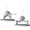 Ces araignées mécaniques quadrupèdes en forme de dôme sont équipées d'une redoutable puissance de feu frontale, leur permettant de remplir une grande variété de rôles sur le champ de bataille. La figurine peut être assemblée avec l'option d'un lance-flammes ou d'un blaster ionique.