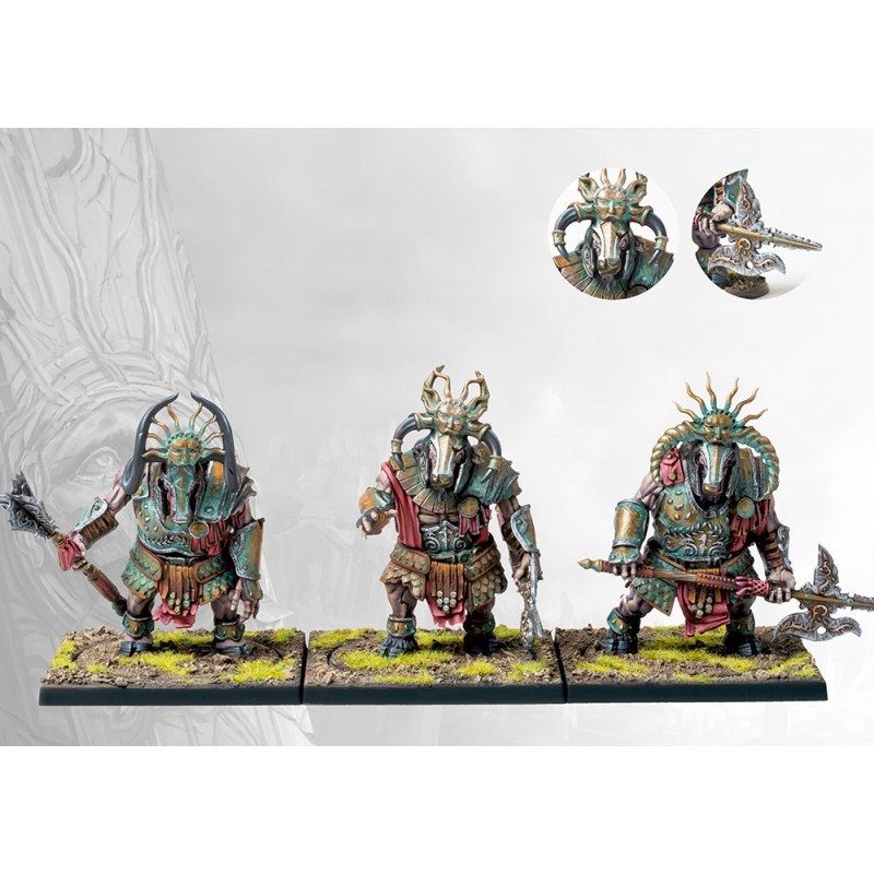 Dans l'Ancien Dominion, les Buccephaloi servaient de protecteurs révérés des sites sacrés. Ces humbles et pieux gardiens, choisis dans les rangs des puissants Minotaures Thyréens, se faisaient rituellement enlever leurs cornes en signe de dévotion et de soumission à Hazlia. Les Buccephaloi possédaient une telle puissance et une telle grandeur qu'ils n'étaient appelés au combat que dans la mort, car de leur vivant, personne n'osait s'opposer à eux.