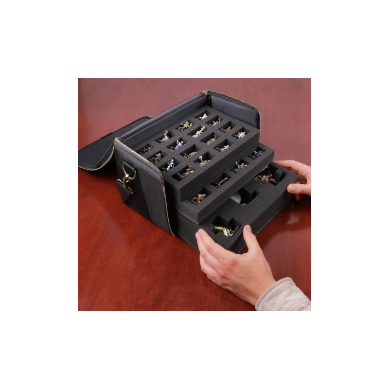 J'en profite !Préparez votre précieuse troupe de héros, de méchants et de monstres pour une action rapide dans ce sac de transport compact pour figurines miniatures. Il comprend 3 plateaux en mousse pour stocker et protéger en toute sécurité vos figurines : deux plateaux de 16 emplacements pour les figurines de taille standard (20 à 25 mm) et un plateau personnalisable de 60 mm d'épaisseur pour les modèles plus grands ou de formes irrégulières. Les parois rembourrées du sac offrent une protection supplémentaire contre les chutes, les chocs et les rayures.