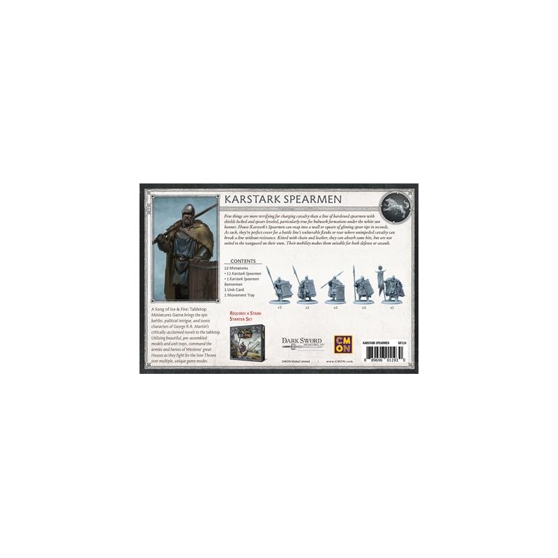 J'en profite !Une des pires situations pour une charge de cavalerie est de se heurter à un mur de troupes bien rangées, protégées par des boucliers et pointant des lances vers l'avant, prêtes à embrocher les chevaux. C'est précisément à cette tactique que les lanciers de la maison Karstark se préparent sans relâche, les rendant ainsi parfaits pour protéger les flancs et l'arrière d'une armée.