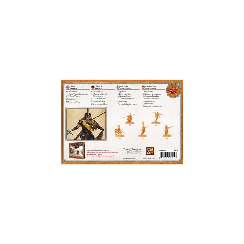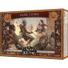 J'en profite !Les étendues sans fin du paysage dornien rappellent une mer de dunes infinie, où il est facile de se perdre dans les sables mouvants. Pourtant, c'est le territoire des redoutables Vipères des Dunes, qui connaissent chaque grain de sable de cette terre aride. Leur expertise du terrain les rend maîtres dans l'art de la guérilla. Ils traquent sans relâche leurs ennemis, les encerclant habilement avant de les transpercer de leurs lances. Les Vipères des Dunes excellent lorsqu'elles sont associées à d'autres unités, mais elles sont également capables de se débrouiller seules en cas de besoin.