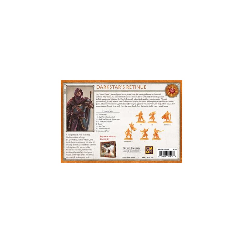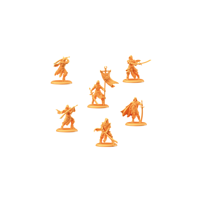 J'en profite !La garde personnelle de Ser Gerold Dayne ne porte pas de nom officiel, mais est redoutée sous le sobriquet d'Escorte de Sombre Astre, un titre amplement suffisant pour semer la terreur parmi les rangs ennemis. Composée de soldats qui adoptent le style de combat et le comportement sombre de Sombre Astre, cette Escorte semble surgir de l'ombre pour frapper les flancs non protégés de l'ennemi, puis disparaît jusqu'à ce qu'une nouvelle opportunité se présente, laissant rarement des survivants sur son passage.