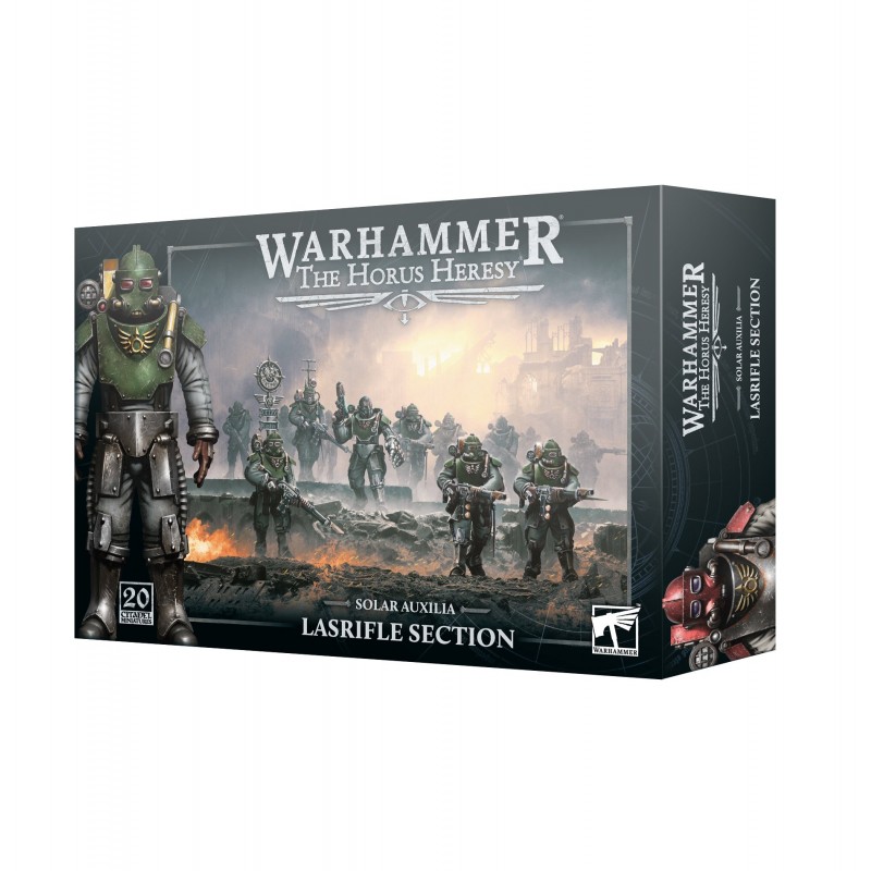 J'en profite !La section Lasrifle comprend 20 fantassins en plastique équipés de fusils lasers standard. Ces auxiliaires peuvent être organisés en deux escouades ou assemblés en une seule grande section. Chaque escouade offre diverses options de personnalisation, notamment des baïonnettes, un sergent armé d'armes supplémentaires et des soldats équipés d'un vexilla et d'un vox interlock.