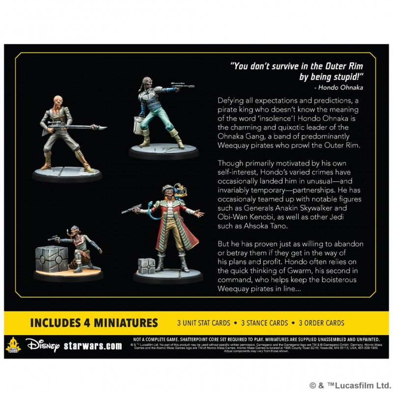 Cependant, il s'est montré tout aussi prêt à les écarter ou à les doubler s'ils entravaient ses plans et ses profits. Hondo compte souvent sur l'esprit vif de Gwarm, son second de confiance, pour maintenir l'ordre parmi les pirates turbulents de Weequay...