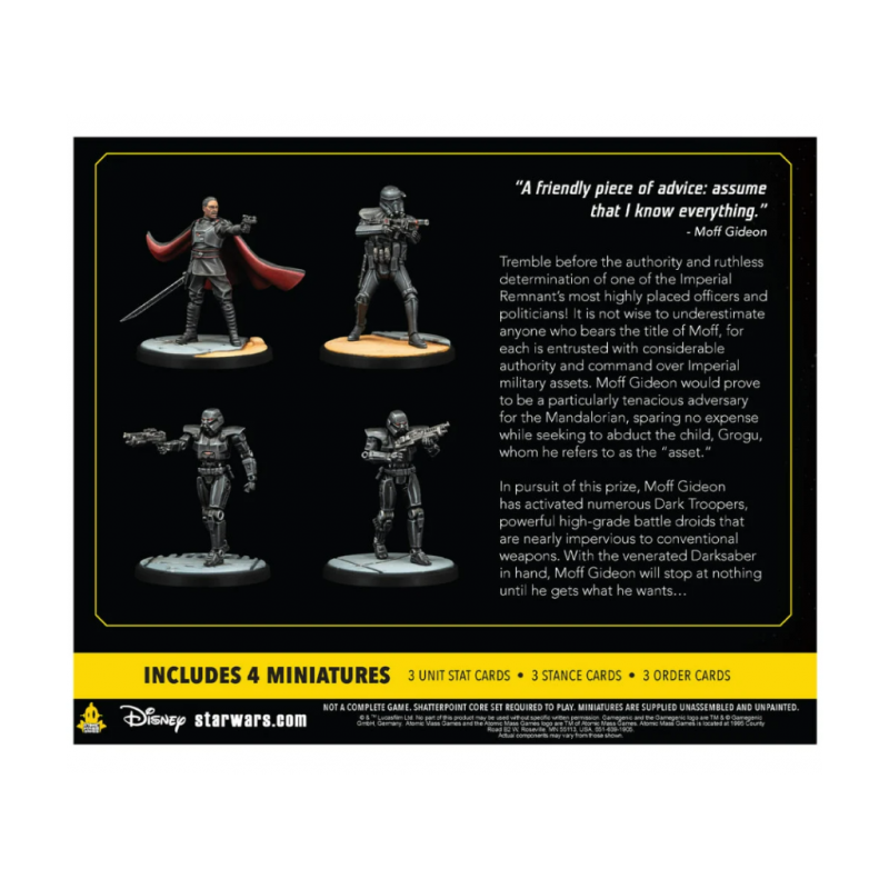 Dans sa quête incessante, le Moff Gideon déploie de nombreux Dark Troopers, de redoutables droïdes de combat haut de gamme presque insensibles aux armes conventionnelles. Armé du célèbre Darksaber, le Moff Gideon ne reculera devant rien pour atteindre ses objectifs...