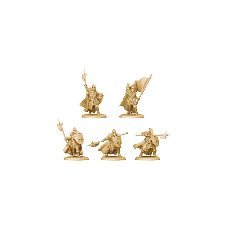 J'en profite !La doctrine de la Maison Baratheon repose sur l'utilisation d'armes lourdes et d'armures massives, ce qui transforme ses forces en une véritable forteresse ambulante. Impénétrable et redoutable, elle met l'ennemi devant un dilemme, surtout face aux lignes renforcées par les Hallebardiers. La vulnérabilité traditionnelle de la plupart des fantassins contre la cavalerie est ainsi annihilée. De plus, toute cavalerie ou force de flanc hésitant à charger les lignes des Baratheon expose des failles que tout bon commandant saura exploiter.