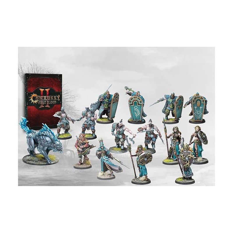 Votre Warband Old Dominion First Blood comprend 15 figurines : un socle de 4 pièces chacun pour les Kheres, les Légionnaires et les Varangiens, un Brute Bone Golems premium, un Hierodeacon et l'Officier, l'Optio. Ce coffret est également accompagné d'un guide de démarrage rapide de First Blood, de toutes les cartes de commandement nécessaires avec les codes QR pour l'application permettant d'accéder au constructeur d'armée gratuit et aux règles, de socles et de supports pour chaque figurine, et d'une notice de montage. Si elles sont parfaites pour commencer à jouer à First Blood, ces figurines sont également prêtes à être utilisées dans le jeu de bataille fantastique de masse Last Argument of Kings grâce aux plateaux de mouvement fournis.