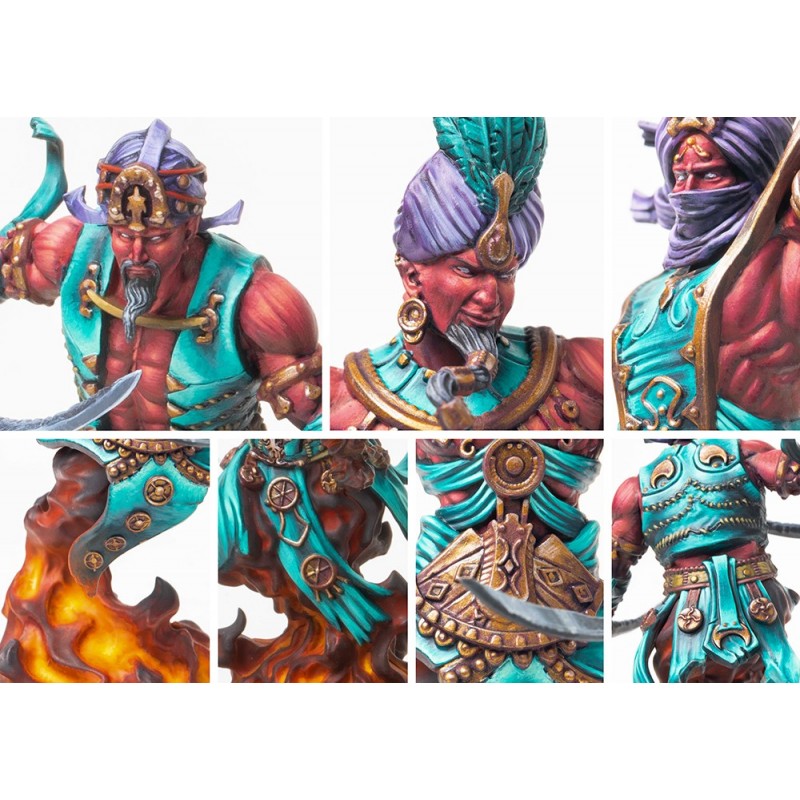 Êtres élémentaires malveillants, les Efreet incarnent la nature agressive de la Cour de Feu en marquant les Régiments ennemis avec des Marqueurs Infernaux et en étendant la puissance sorcière des lanceurs de sorts de feu. À leur mort, leurs âmes alimentent les Rituels Sorciers du Feu, leur donnant une dernière chance de se venger. Assurez-vous d'inclure des Efreet Flamecasters pour un puissant soutien à courte portée et des Efreet Sword Dancers pour former les lignes de bataille infernales de votre armée !