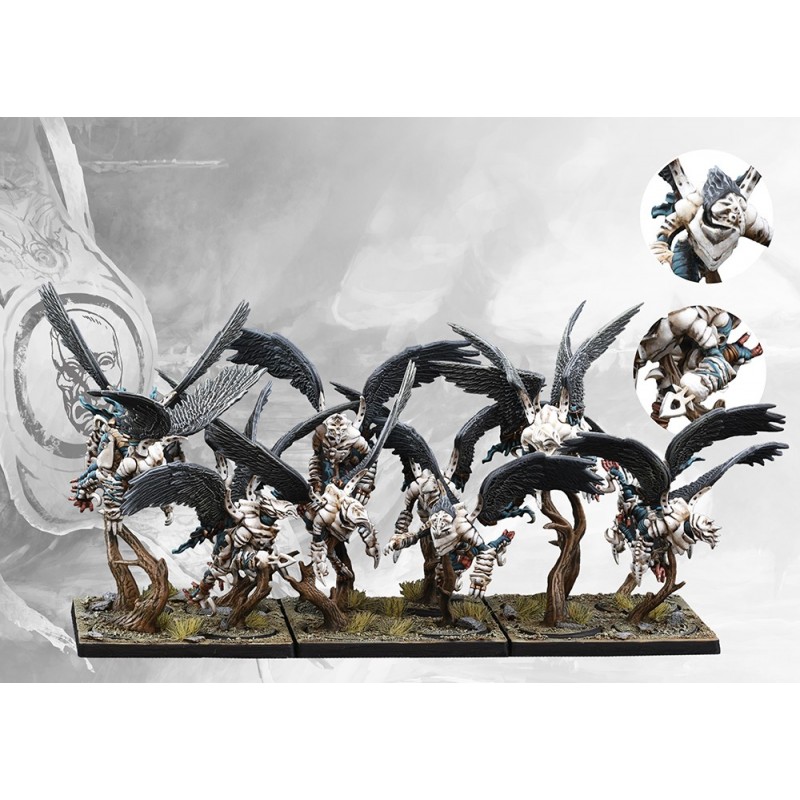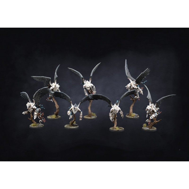 Les premiers modèles à "voler" dans le jeu Conquest. Avec des os allégés au point de pouvoir à peine soutenir la musculature qui alimente les puissantes ailes qui les portent dans les airs, un Styrix des Spires serait incapable de représenter une menace significative sur le champ de bataille s'il n'était pas pour le cruel mépris de leurs maîtres pour leurs vies… et la charge toxique et létale qu'ils transportent dans leurs sacs gonflés.