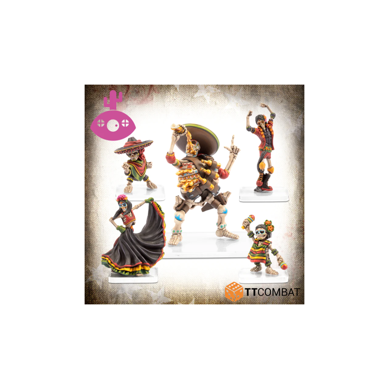 Du petit Angelitos au Difuntos, ces squelettes apportent sombreros et maracas dans le ring, imposant leur rythme et leur ambiance. Comme tous les lutteurs de la Cabala, ils ne restent jamais à terre bien longtemps, grâce à leurs 2 dés Crowd qui leur permettent de se remettre d'un K.O. ! Bandido Esqueleto complète l'équipe. Ce squelette cyclope, amateur de tequila, est grand, fort, et grâce à ses Finger Guns (toujours chargés, bien sûr), il peut infliger des K.O. à distance. Mais attention, il se peut qu'il ait parfois un peu trop bu !
