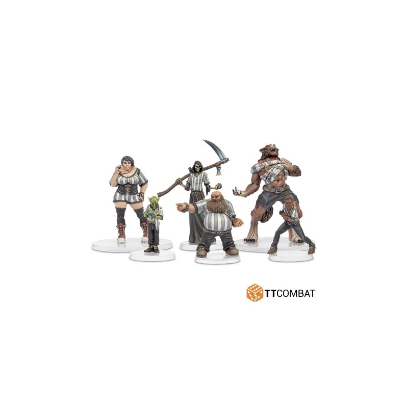 Cette extension contient 6 figurines d'arbitres, des bases en acrylique transparent, des cartes de statistiques, et des cartes de règles détaillant les règles pour le croc-en-jambe, le plaquage, et l'utilisation des arbitres dans vos parties de RUMBLESLAM. Notez que les bases en acrylique transparent ont un film protecteur pelable. Miniatures fournies avec des bases carrées.