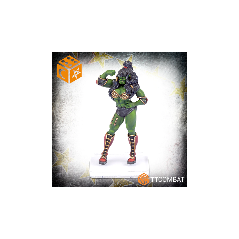 Porcelynn est une grappler pure et dure ! Mais cela ne l'empêche pas d'apprécier les plaisirs simples de la vie, comme frapper des visages, et se faire frapper en retour (les Orques sont bizarres). Avec ses statistiques solides et variées, ainsi qu'une multitude de capacités spéciales, vous aurez toujours une nouvelle stratégie à explorer ! Son coup signature, le Handspring Back Elbow, est particulièrement redoutable : Porcelynn se déplace de 3 cases avant d'asséner un coup de coude à son adversaire. Et si celui-ci se trouve près d'un coin de ring, ce coup inflige un total impressionnant de CINQ DÉGÂTS !